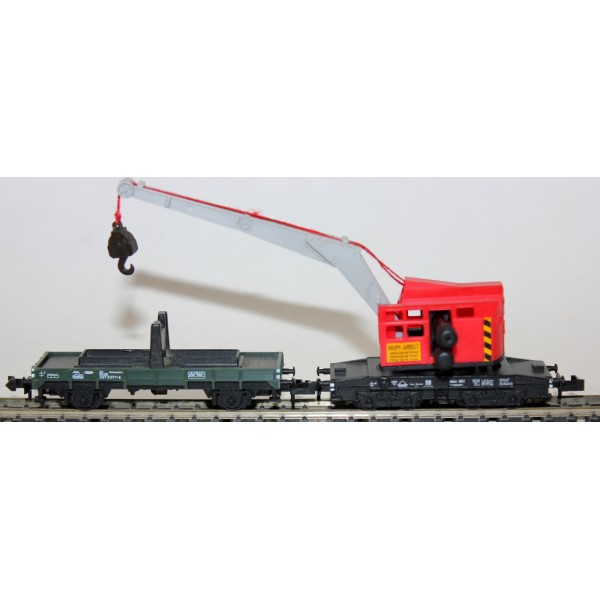 4-osiowy dźwig z platformą kolei DB w skali 1:160.
