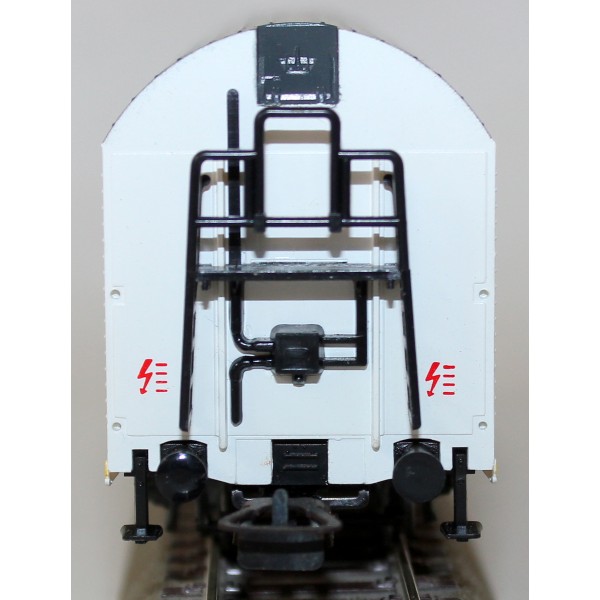 Model kompletny w detale: zderzaki, szczęki hamulcowe, rączki manewrowych (te w woreczku do samodzielnego montażu), stopnie. Wagon właściwie nieużywany, śnieżna biel. Oryginalne opakowanie.