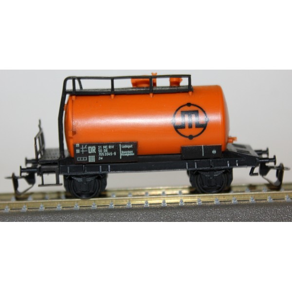 2-osiowa cysterna rafinerii Schwedt kolei wschodnioniemieckich DR w skali 1:120 produkcji Berliner TT Bahnen.