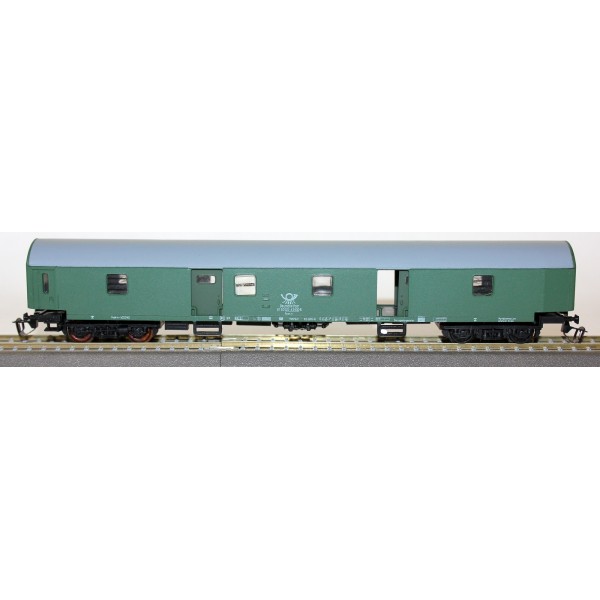 4-osiowy otwierany wagon pocztowy kolei wschodnioniemieckich DR w skali 1:120 produkcji Berliner TT Bahnen.