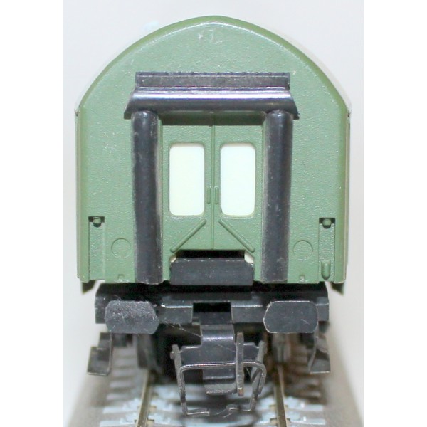Kompletne wszystkie detale. Łatwy do samodzielnego oświetlenia: 1-stronnie izolowane koła przewodzą prąd przez metalową ramę i blaszkę mocującą wózek, zakończoną pod sufitem z każdej strony wagonu.